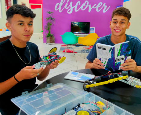 Aprenda inglês, Programação de Games, Robótica e Informática com o Método da DiscoverON Arujá. Comprovado por mais de 15 mil alunos e 20 anos de história.