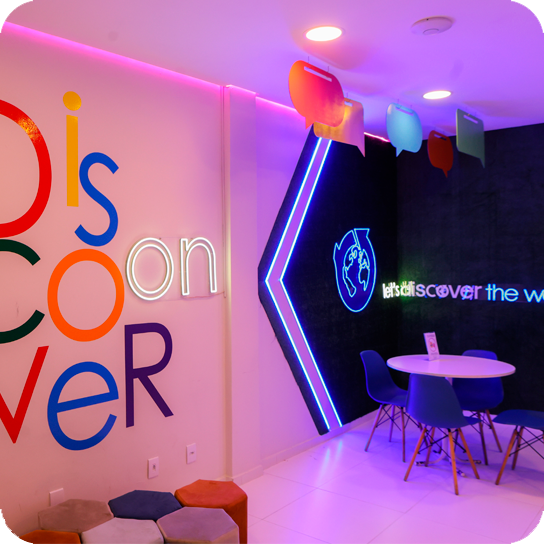 Estudo Inglês a um ano na Discover e amo as aulas é divertido e com uma dinâmica diferente de uma escola normal , os professores, a equipe e recepção são sempre bem alegres. O ambiente é muito agradável recomendaria pra todo mundo de todas as idades que deseja fazer algum dos cursos.